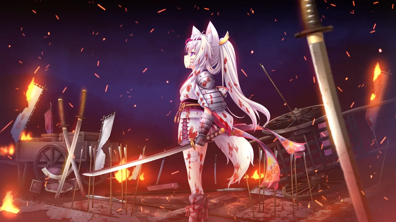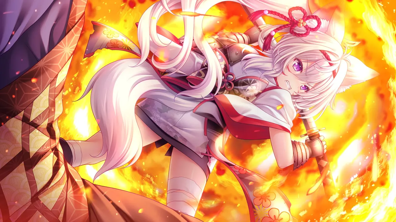 现身的白兽腰佩大太刀,身披铠甲,勇猛而刚强。